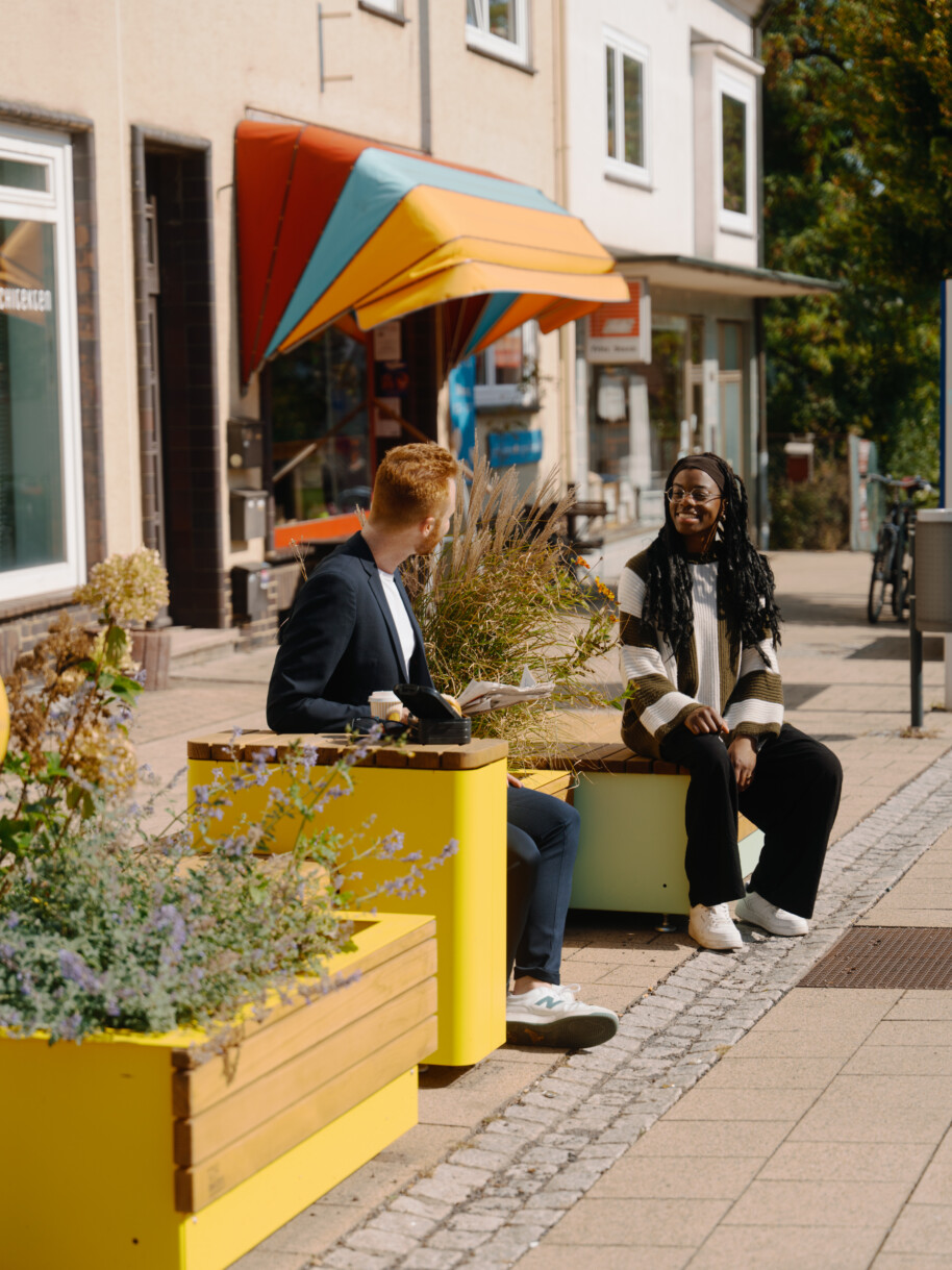 Vor allem die Sitzmöbel laden zum Verweilen, zum Kaffeetrinken und zum Gespräch ein und tragen dazu bei, die Innenstadt grüner und einladender zu gestalten. Besonders für ältere Menschen sowie mobilitätseingeschränkte Bürgerinnen und Bürger entstehen neue, gut erreichbare Aufenthaltsmöglichkeiten – ganz im Sinne einer be“sitz“baren Stadt.