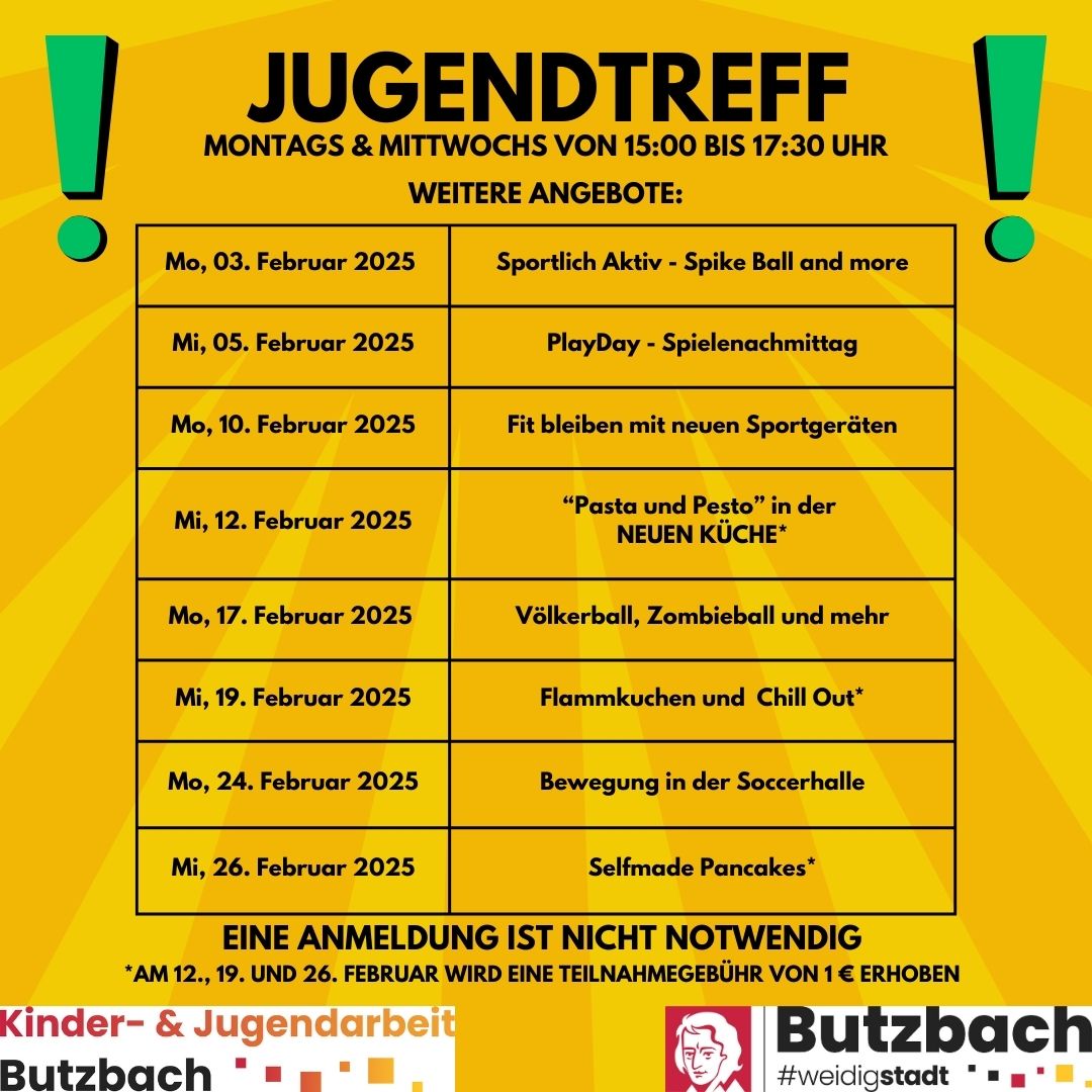 06.03.2025 -Die Stadt Butzbach freut sich, die neuen Angebote im Jugendtreff für den Monat März bekannt zu geben. Der Jugendtreff (Werner-von-Siemens-Straße … Jugendtreff Butzbach: Angebote im März ...